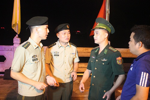 圖為中方邊檢官兵與越方邊檢官兵對接相關事宜