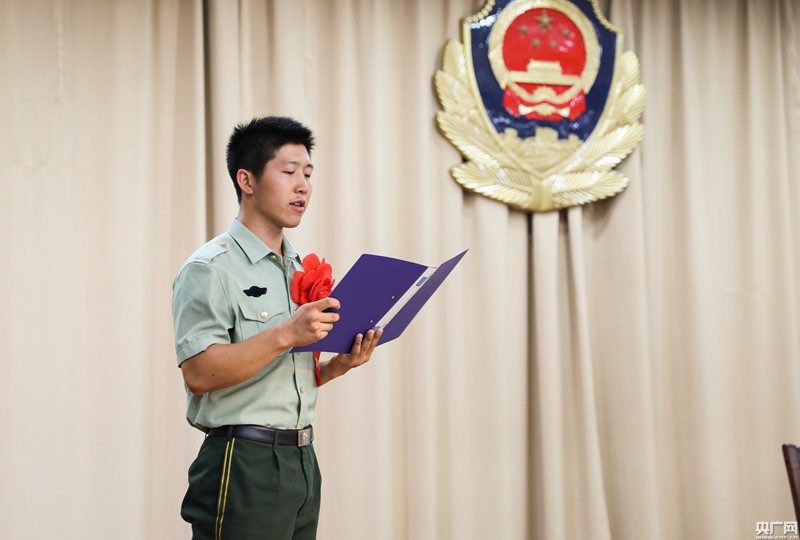 退伍老兵代表發言,寄語留隊戰友