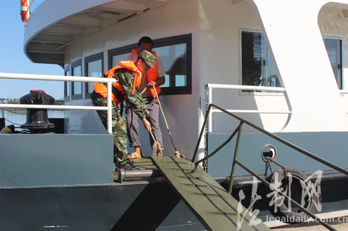 截止9月4日12時30分,水位累計上漲80余公分,漲勢迅猛,已淹沒江邊碼頭及圍欄防護設施,船舶搭靠難度增大,嚴重影響&&境旅客、車輛通關安全。這個站執勤官兵立刻展開應急行動,主動與代理公司取得&&,獲取當日&&境旅客、車輛、船舶信息,並將救生衣、救援繩等應急裝備規放在幾個關鍵位置,確保發生安全事故時能夠第一時間展開救援;積極與海事部門溝通&&,獲取水文信息,開展聯合監護、檢查,在江邊較為危險的位置和臨時搭建的通道、梯口處部署執勤警力,引導&&境旅客、車輛安全迅速登船,為廣大&&境旅客營造安全、順暢的通關環境。(沈垣博)