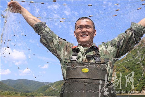 圖為官兵學習捕魚技巧