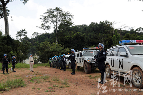 圖為中國維和警察防暴隊與尼日利亞防暴隊正在進行警戒