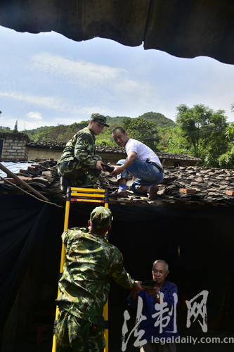 圖為在福建省寧德市蕉城區飛鸞鎮龜岩村,邊防官兵幫助孤寡老人加固房屋