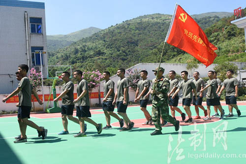 圖為邊防官兵組織應徵青年開展軍事訓練