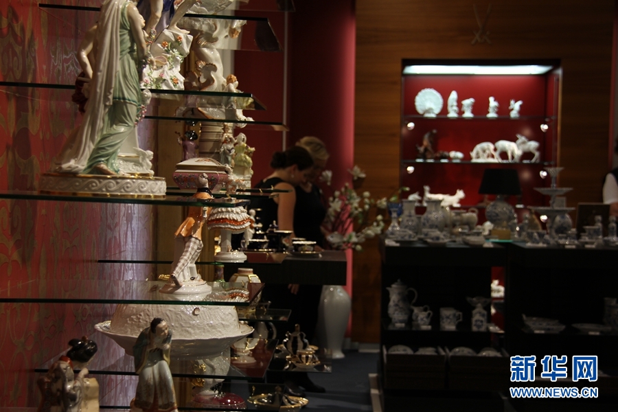 展銷廳裏陳列和出售邁森瓷器精品。新華網記者 宋國城攝
