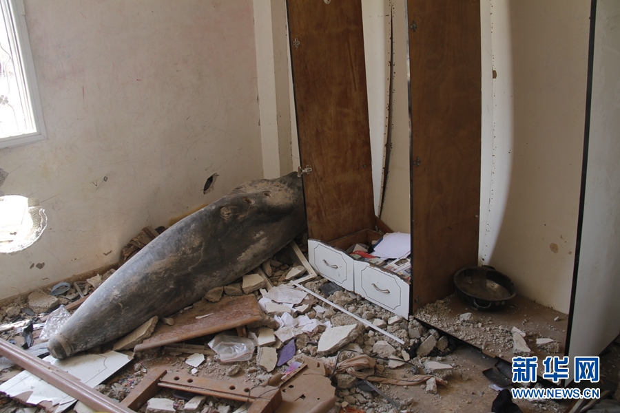 8月7日,一戶巴勒斯坦人赫然發現家中有顆未爆的炸彈,外殼有破損。這家人因加沙戰火出逃避難,回家發現房屋受到嚴重破壞。新華網記者 劉立偉攝