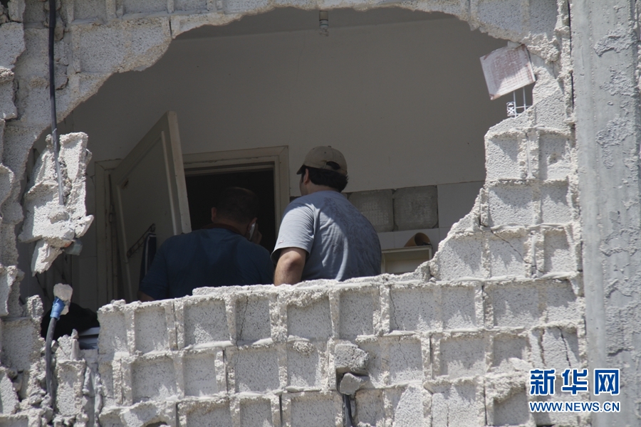 8月6日,幾位巴勒斯坦人正在拆卸房門。這家人因加沙戰火出逃避難,回家發現房屋被毀,已經無法居住,於是決定拿走一切可以拿走的東西。新華網記者 劉立偉攝