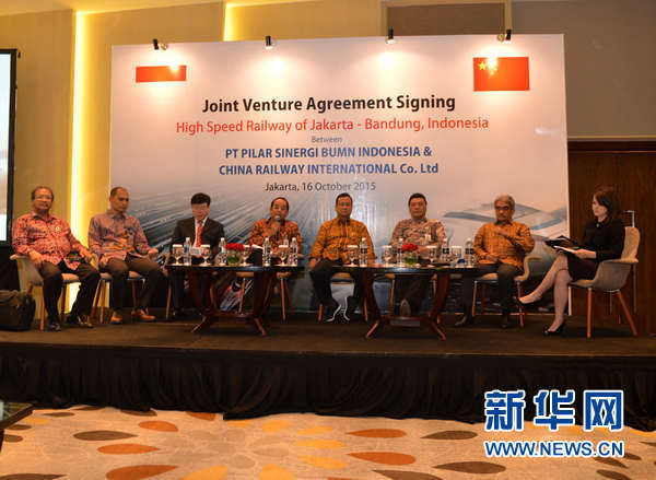 10月16日,在印尼首都雅加達,中印尼企業代表在簽約儀式現場舉行新聞發布會。新華社記者賀長山攝