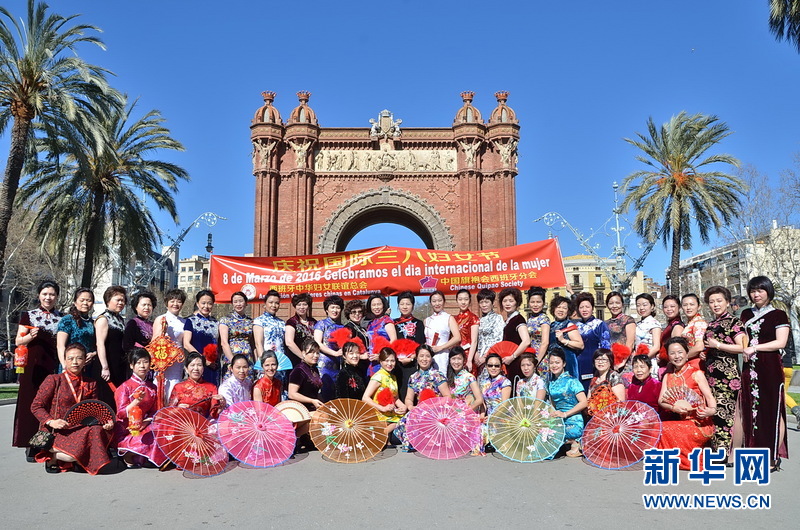 新華網巴塞羅那3月6日電(記者 周喆)為慶祝“三八”國際婦女節,巴塞羅那的華人社團5日在市中心著名旅游景點凱旋門舉行旗袍秀活動。