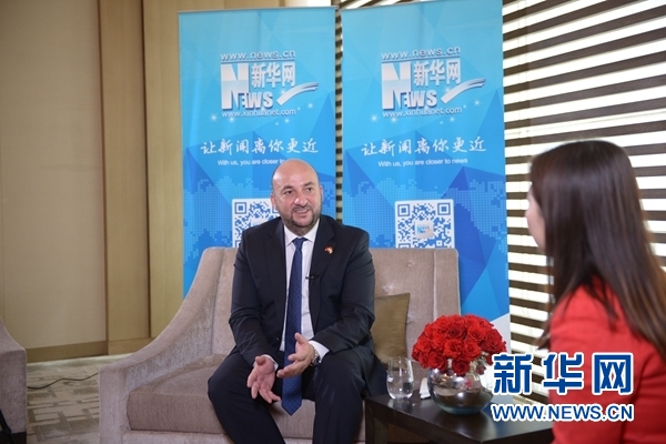 盧森堡副首相埃蒂安·施耐德接受新華網獨家專訪。新華網記者 陳傑攝