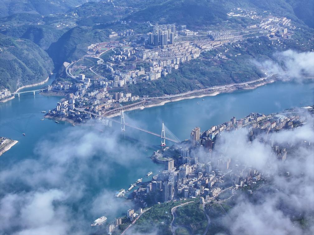 2025年4月10日,一場春雨過後,位於湖北省西部山區恩施土家族苗族自治州巴東縣的長江三峽巫峽口霧氣繚繞,風景如畫,吸引眾多游客游覽觀光。新華社發(趙軍 攝)