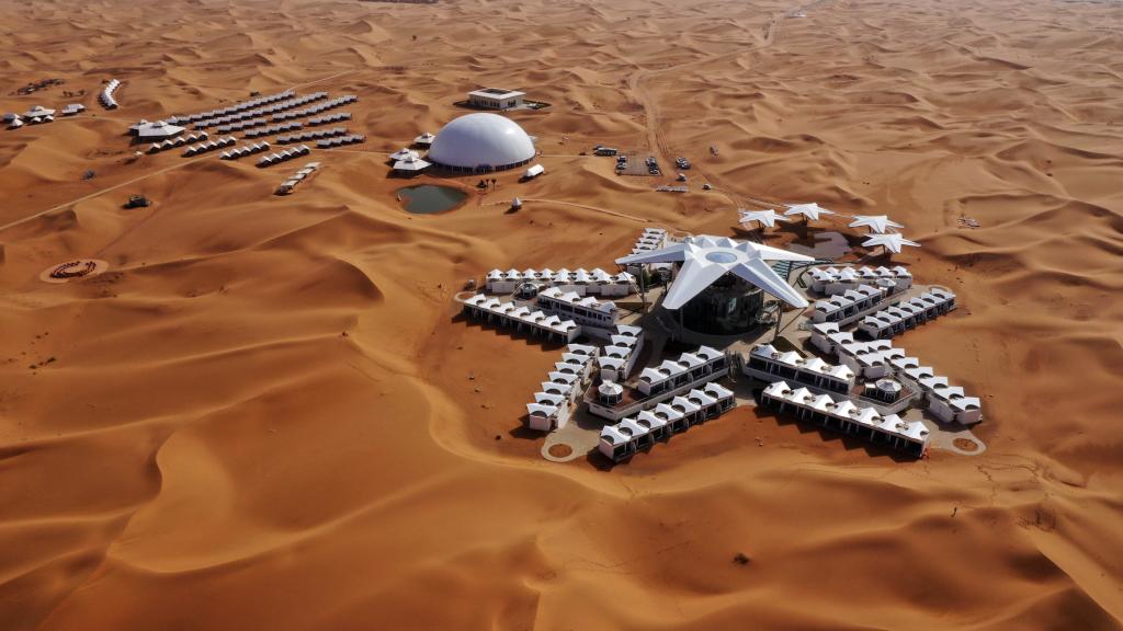 位於中衛的沙漠星星酒店雖價格不菲,卻常年緊俏。除實現“躺在床上數星星”的浪漫構想外,酒店還提供沙療、頌缽等療愈服務。夜幕降臨,住客可隨星空導師步入觀星谷,於銀河之下辨識星座,在宇宙的浩瀚中重新理解自我與生命。