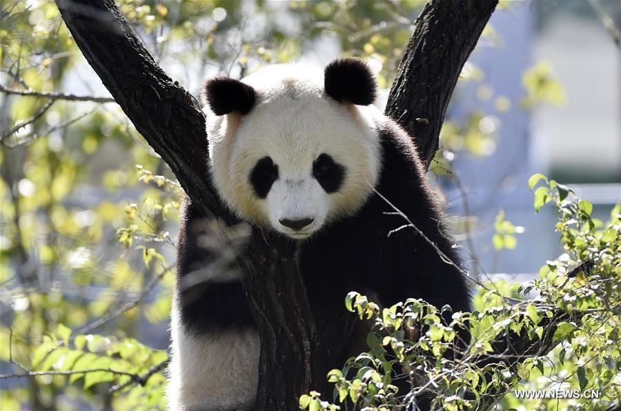 A panda is seen at Shenyang Forest Zoological Garden in Shenyang, capital of northeast China's Liaoning Province, Sept. 27, 2017. After a period of adaptation, four pandas relocated from southwest China's Sichuan Province made their debut here on Wednesday. (Xinhua/Long Lei)