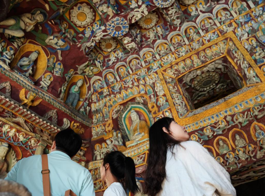 10月9日,在位於今潮8弄的戶外展區,參觀者游覽雲岡第12窟“音樂窟”的1:1複製洞窟。