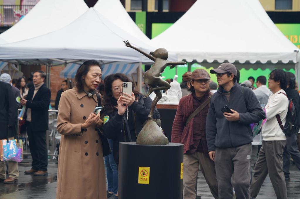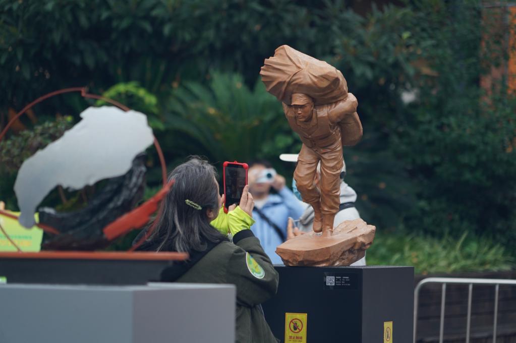 10月24日,觀眾在2025全國青年雕塑藝術作品展現場拍攝雕塑作品。