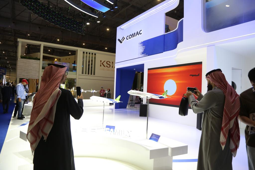 11月17日,在阿聯酋迪拜,觀眾在2025迪拜航空展上參觀中國商飛展&。