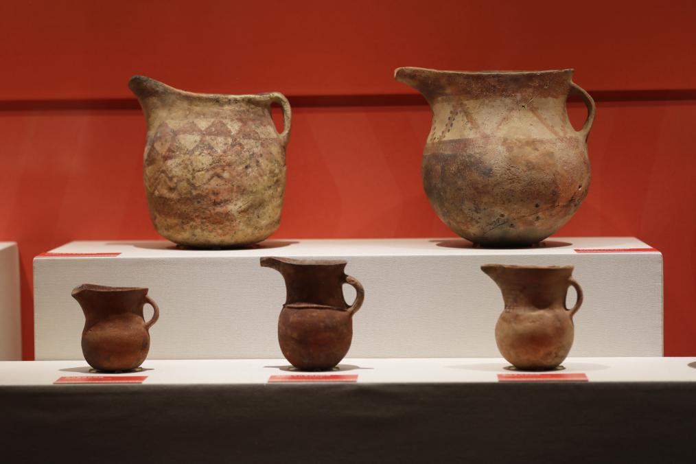 這是1月13日在甘肅省博物館拍攝的“從黃河到天山——史前彩陶的西漸之路”文物展展出的彩陶。
