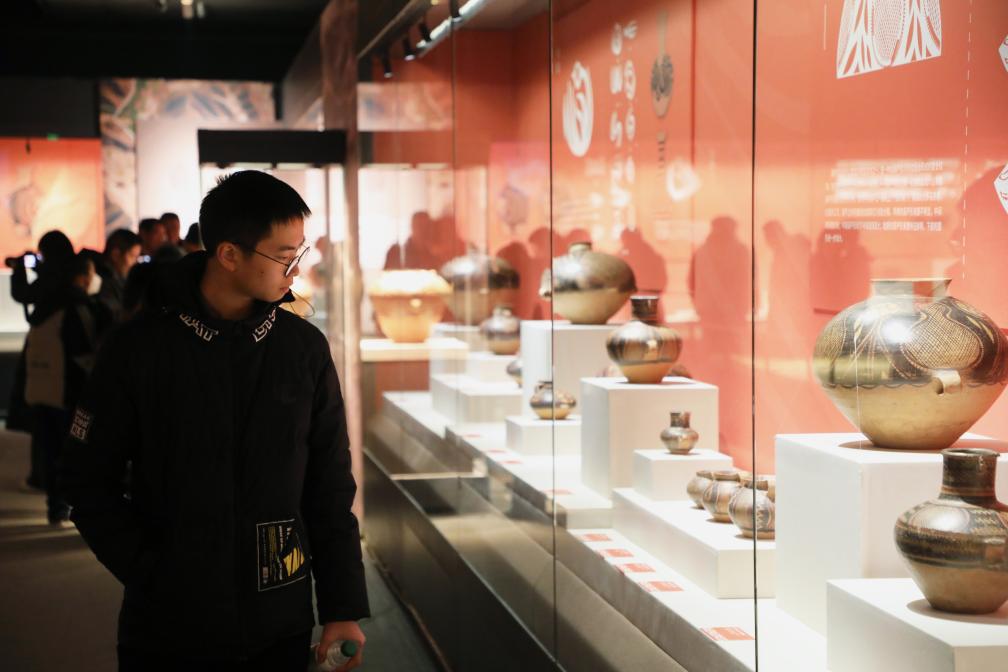 1月13日,觀眾在甘肅省博物館參觀“從黃河到天山——史前彩陶的西漸之路”文物展。