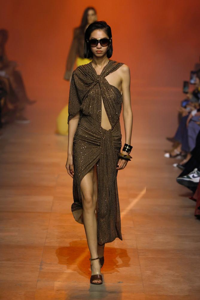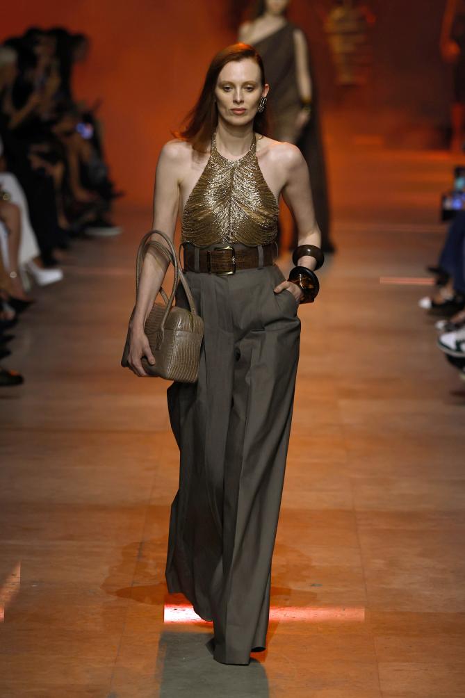 10月4日,模特在法國巴黎時裝周上展示Elie Saab品牌的2026春夏新品成衣。