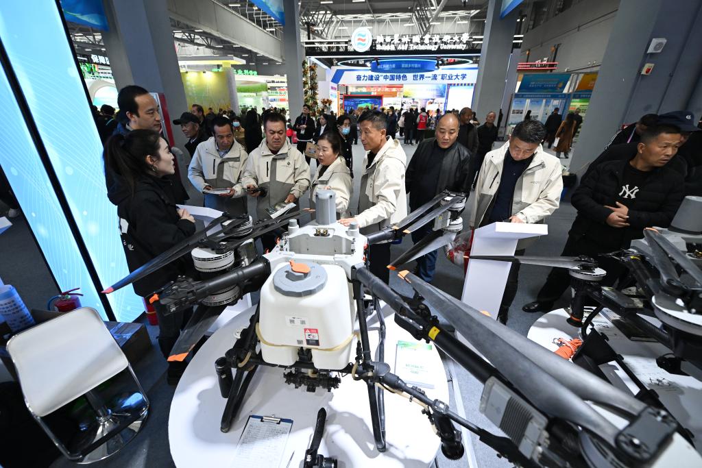 翱翔天空、精準作業的無人機,深入壟間、自主巡檢的機器人,聯通萬物、智慧決策的雲&&……在楊凌農高會上,智慧農業裝備正以具象化的形式展現着農業新質生産力的生動實踐。