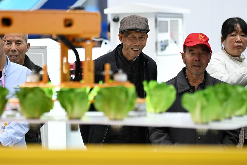 10月25日,參觀者在楊凌農高會上參觀“無人化植物工廠成套技術裝備創制及應用”項目成果。新華社記者李一博 攝