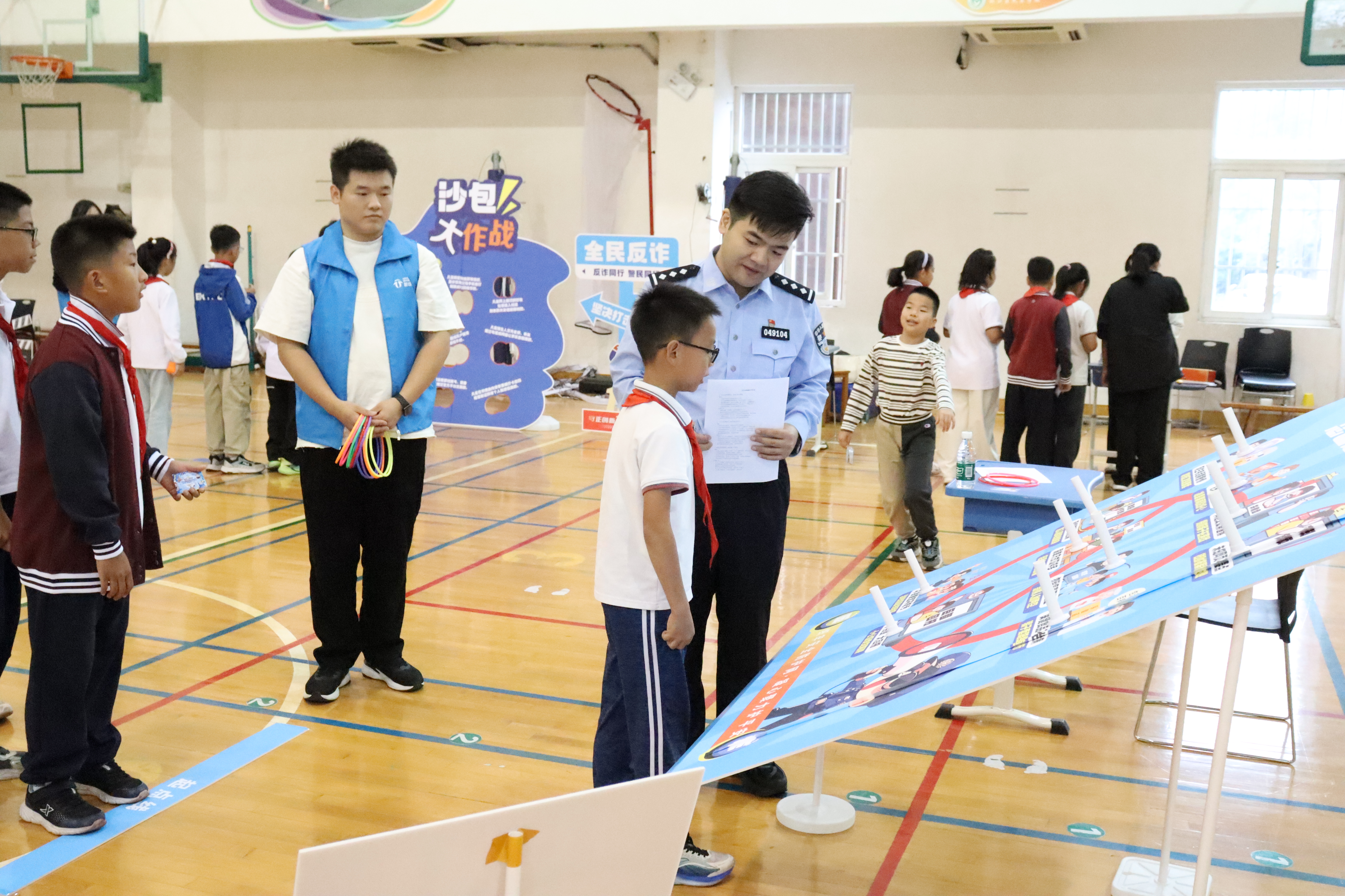 與此同時,風雨操場上的“法治反詐闖關谷”活動也吸引了眾多學生參與。現場設置了法治盲盒墻、法治人生大冒險、反詐套圈圈等五個趣味游戲點位,將法律知識與反詐技巧融入互動游戲中,讓學生們在輕鬆愉快的氛圍中學習法律、增強防範意識。