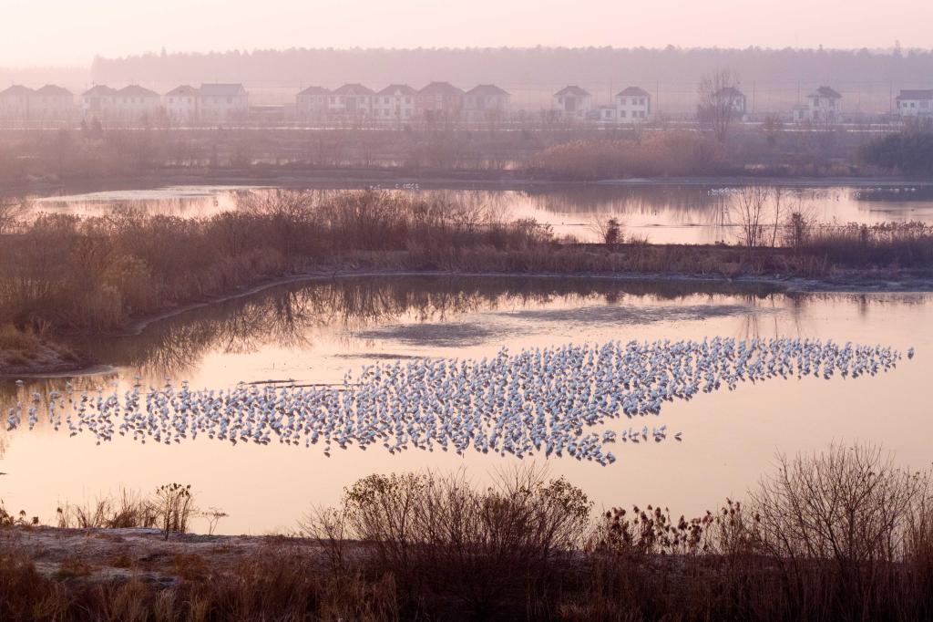 近日,大批候鳥飛抵江蘇省興化市裏下河國家濕地公園,成群結隊在淺灘覓食、休憩。近年來,當地生態環境持續改善,越冬候鳥數量逐年增多。