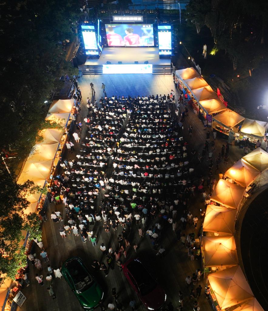 8月17日,南京球迷在“第二現場”觀看比賽(無人機照片)。新華社記者 季春鵬 攝