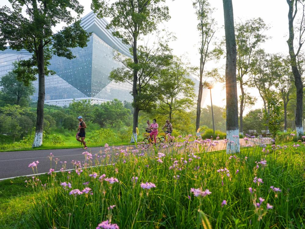 高架橋下建球場、濱河空間鋪跑道……在四川成都街頭漫步,多處公共空間經過創意改造,搖身一變成為居民家門口的運動場。位於成都天府新區江安河畔的“河濱拾光公園”曾是一塊空地,在當地政府的打造下變成了附近居民飯後閒暇的“打卡地”。