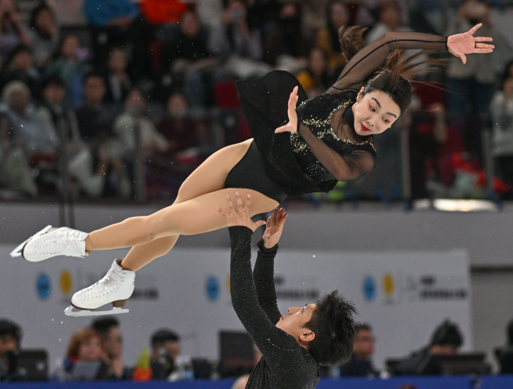 10月24日,隋文靜(上)/韓聰在比賽中。新華社記者 陳誠 攝