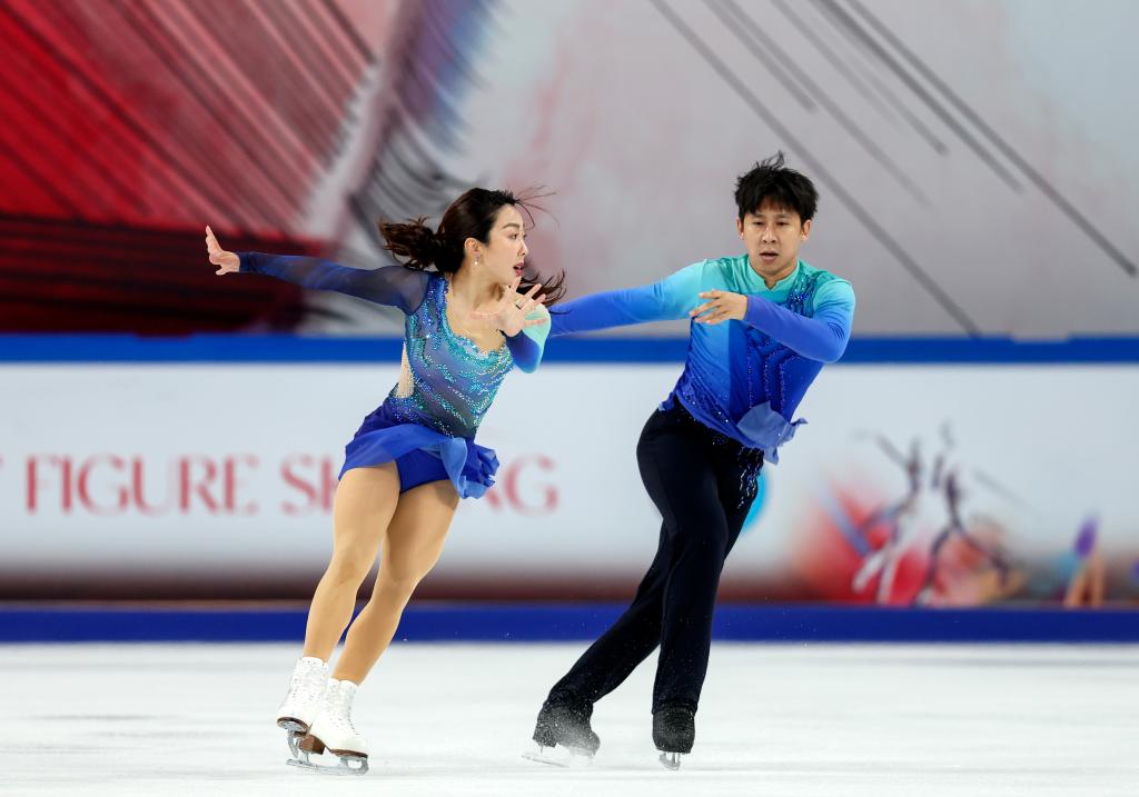 10月25日,隋文靜(上)/韓聰在自由滑比賽中。新華社記者 黃偉 攝