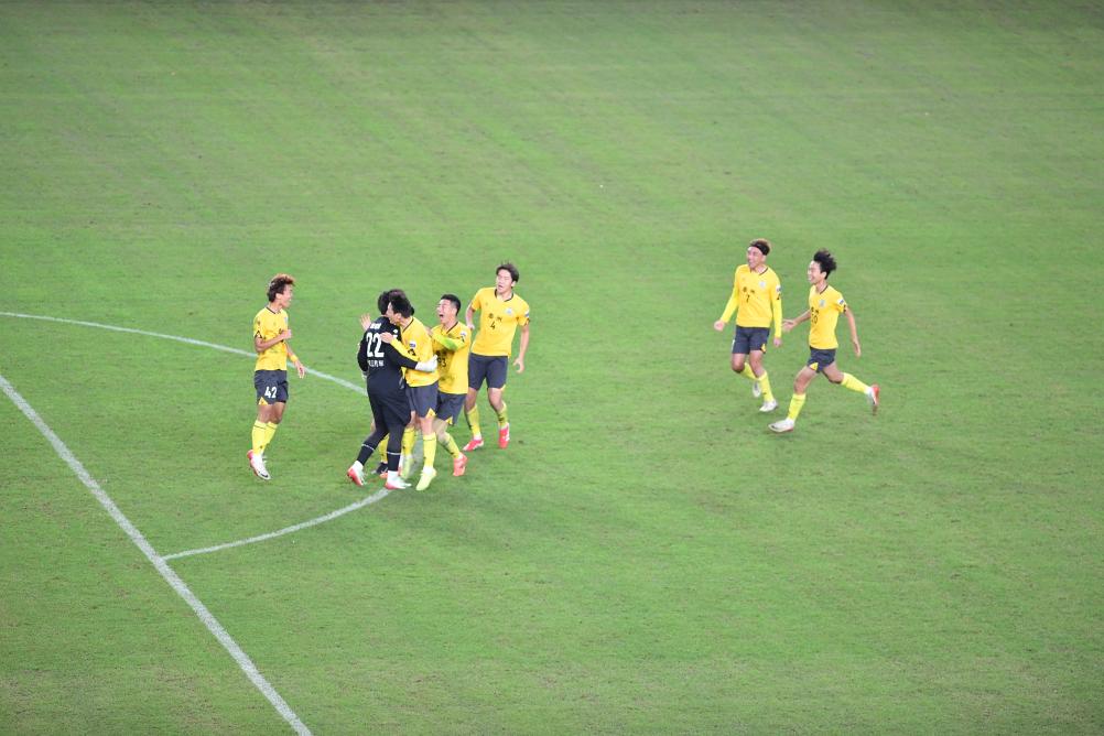 10月18日,泰州隊球員在和南京隊的點球大戰獲勝後慶祝。新華社發(劉臻睿 攝)