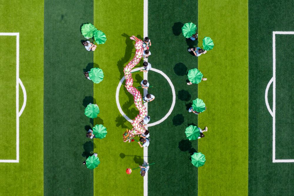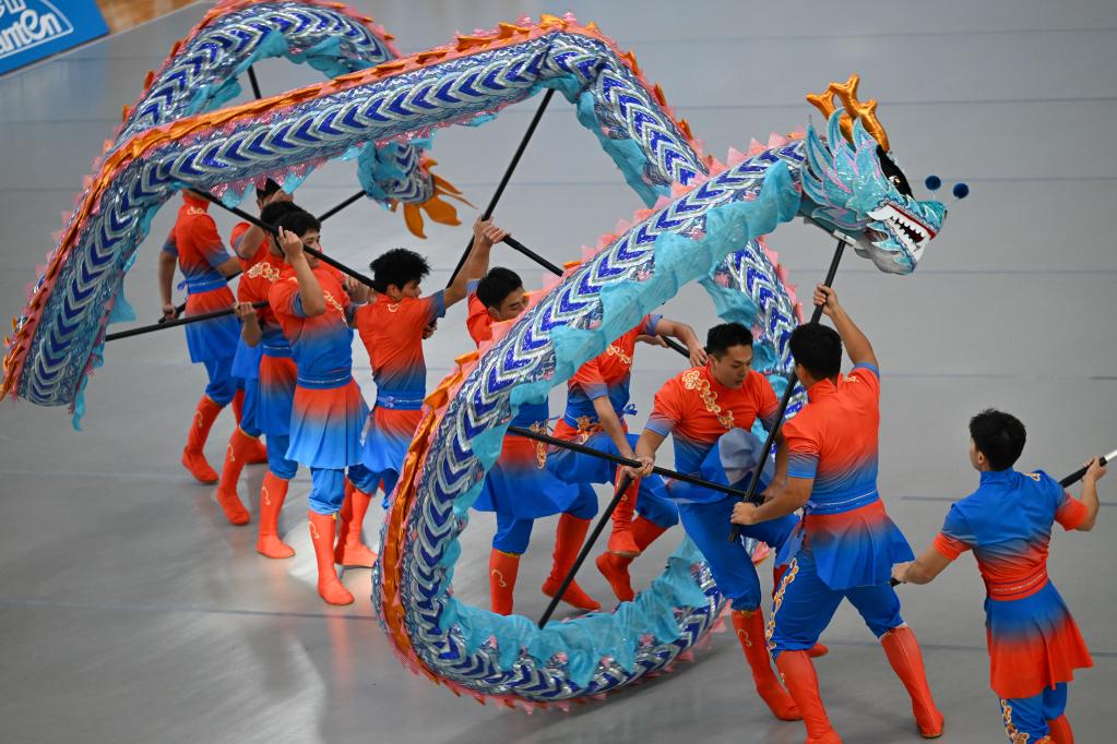 11月10日,香港隊在廣東省佛山市嶺南明珠體育館進行舞龍自選項目的適應場地訓練。新華社記者 鄒競一 攝