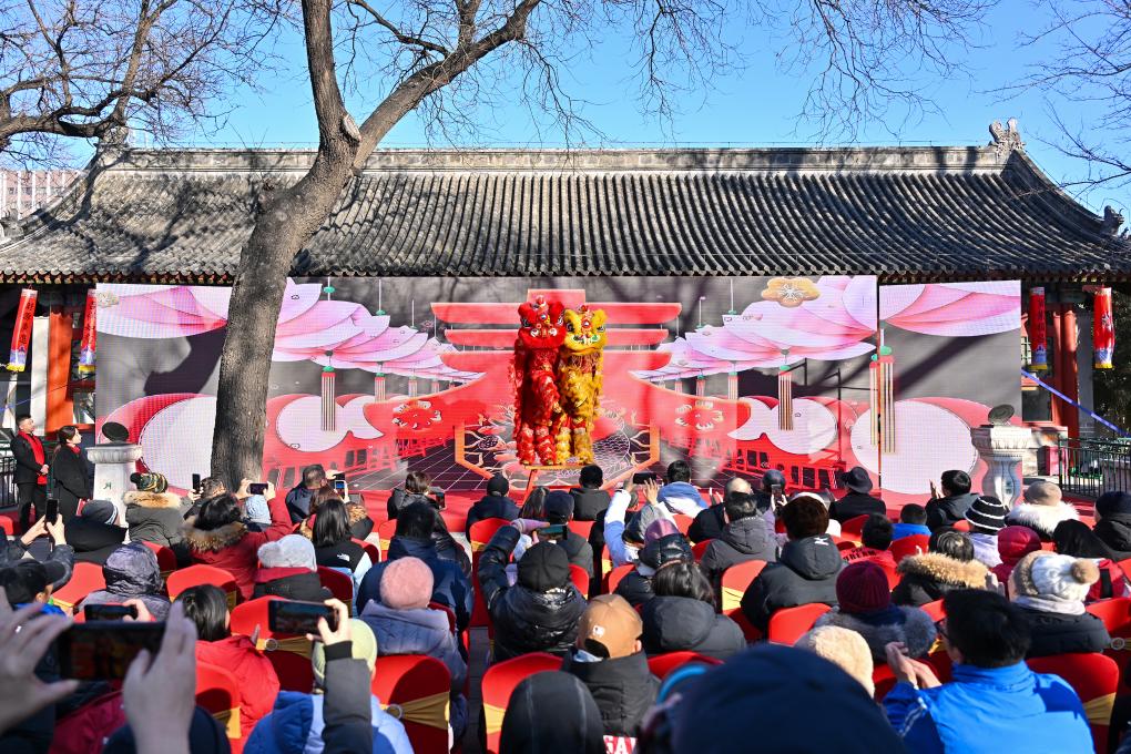 這是北京東城區建國門街道第十八屆立春文化節活動中的舞獅節目(2025年2月3日攝)。新華社記者 李鑫 攝