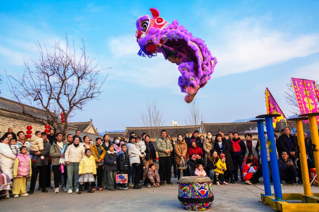 2025年1月30日,山西省運城市鹽湖區嵐山根景區在進行民俗舞獅表演。新華社發(姜樺攝)