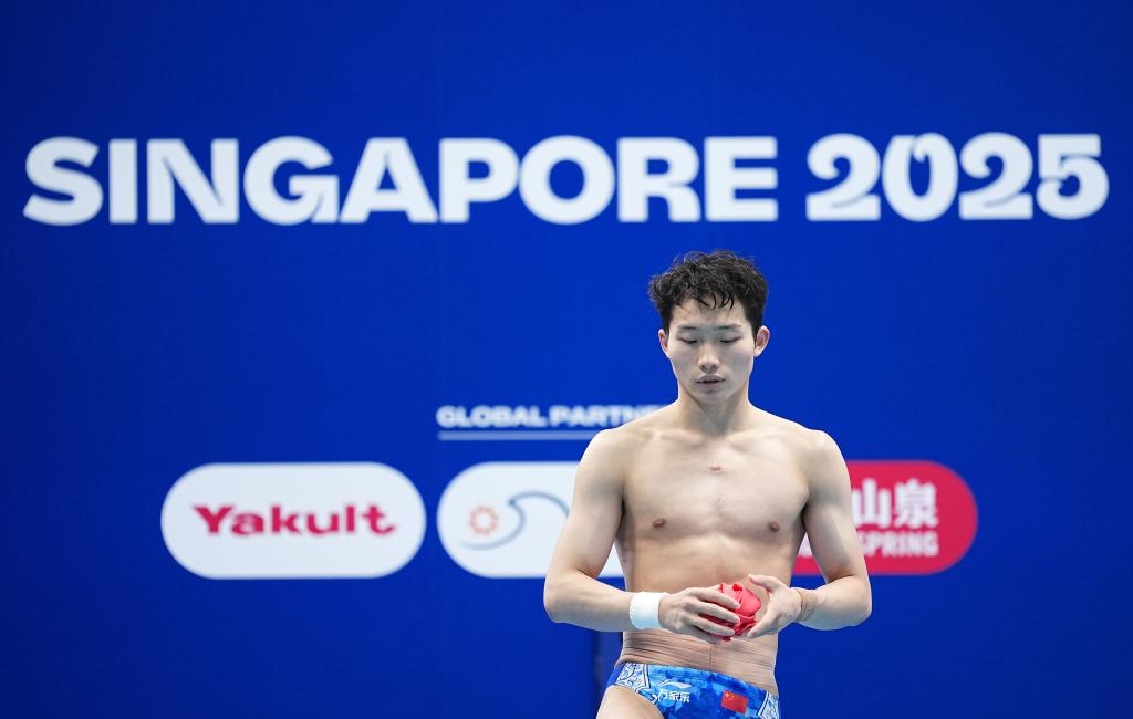 8月1日,中國選手王宗源在2025年世界游泳錦標賽跳水男子3米板決賽中。他最終獲得季軍。新華社記者 薛宇舸 攝