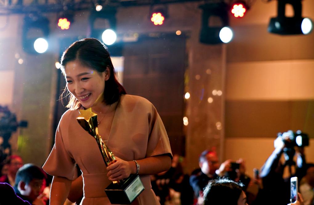 2019年12月11日,中國運動員劉詩雯在頒獎盛典上。劉詩雯獲國際乒聯2019年度最佳女運動員稱號。新華社記者 李安 攝