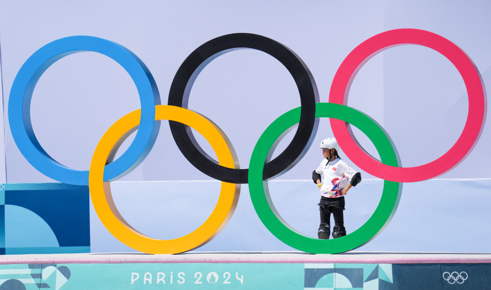 2024年8月6日,巴黎奧運會滑板女子碗池預賽在巴黎協和廣場舉行,中國選手鄭好好在比賽中。新華社記者 杜宇 攝