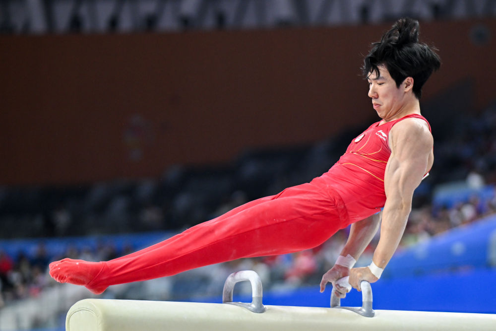 11月12日,湖南隊選手張博恒在鞍馬比賽中。新華社記者 杜子璇 攝