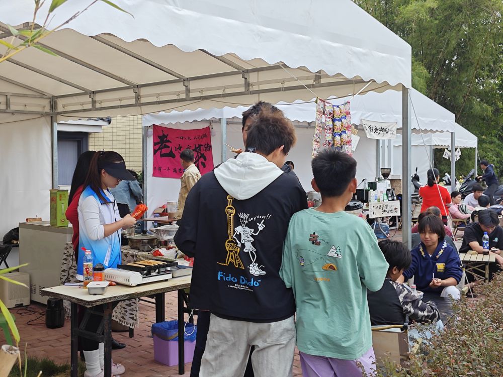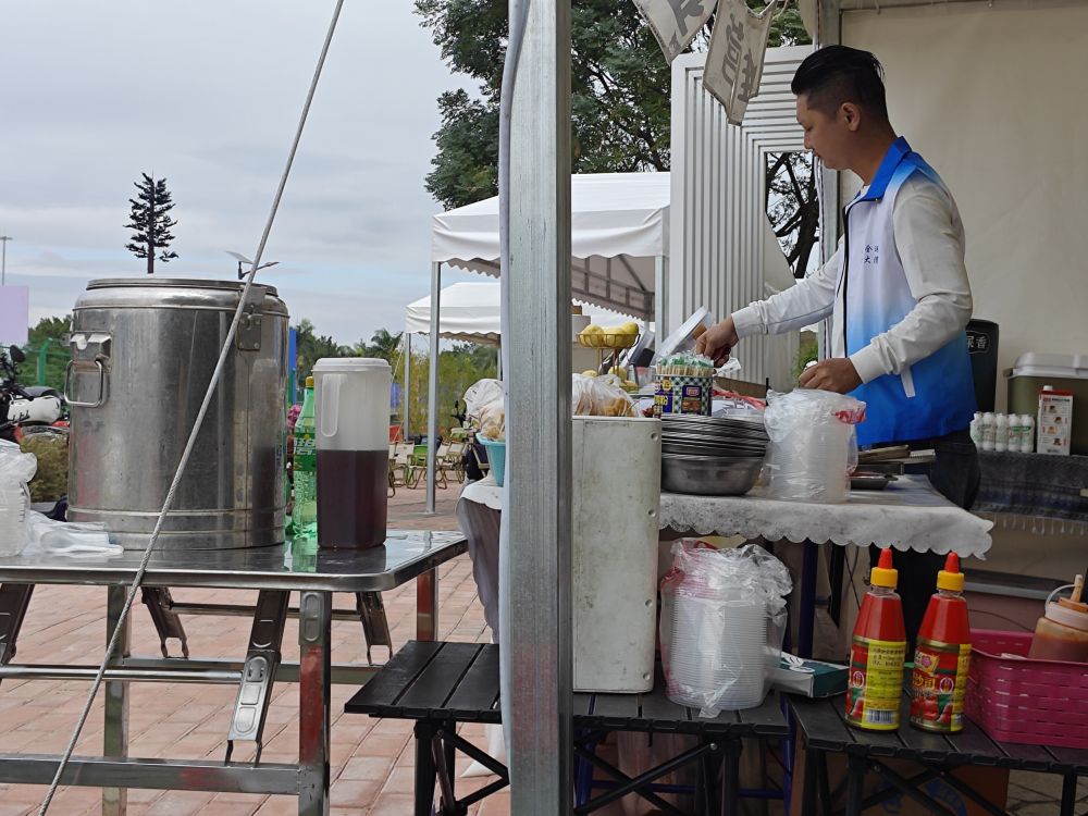 閒談間,不斷有人來吃牛雜面,隔壁攤位的咖啡也很走俏,烤腸也賣得好。