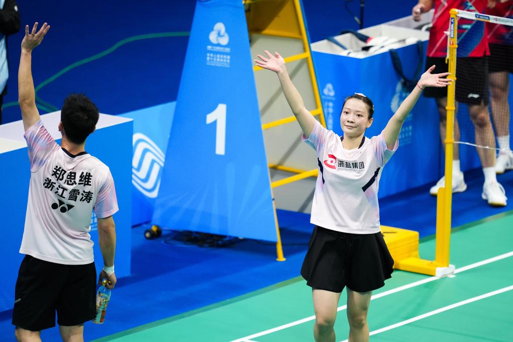 有的告別帶着些許遺憾,有的則收穫圓滿。在羽毛球館裏,當混雙決賽最後一球落地時,鄭思維只是高舉雙臂,黃雅琼則輕輕揮了揮手。浙江隊的“雅思”組合2:0完勝湖南隊的周志宏/魏雅欣,用一枚全運會金牌為自己的傳奇畫下句點。