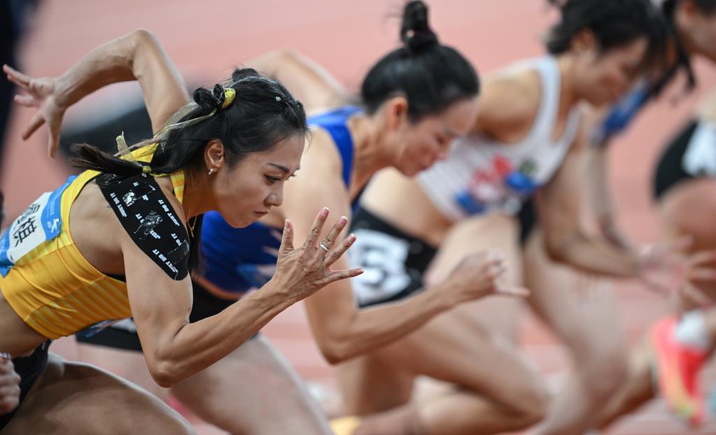 11月17日,福建隊選手葛曼棋(左)在女子100米復賽中起跑。最終,她晉級決賽。新華社記者 肖藝九 攝