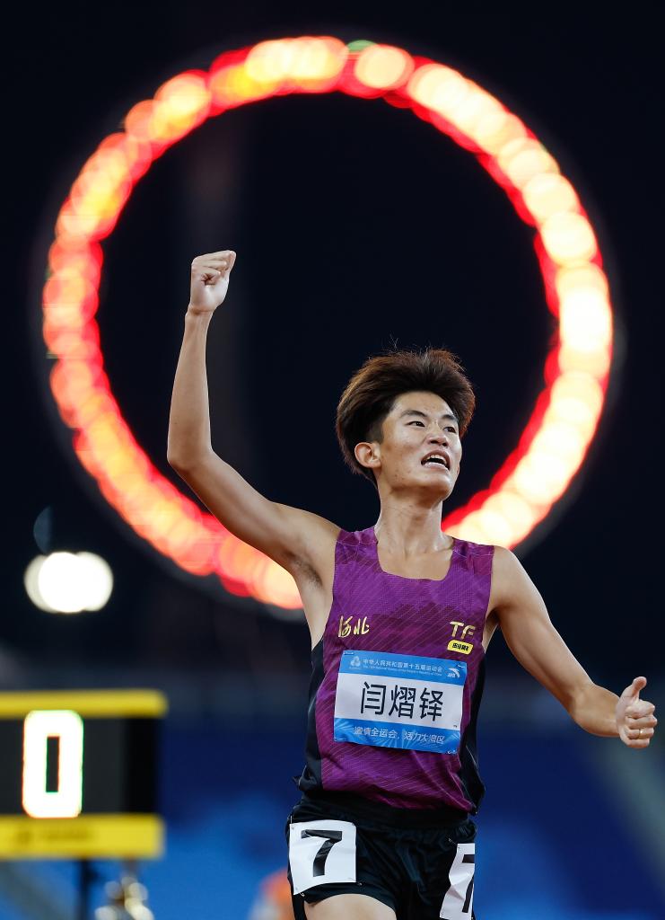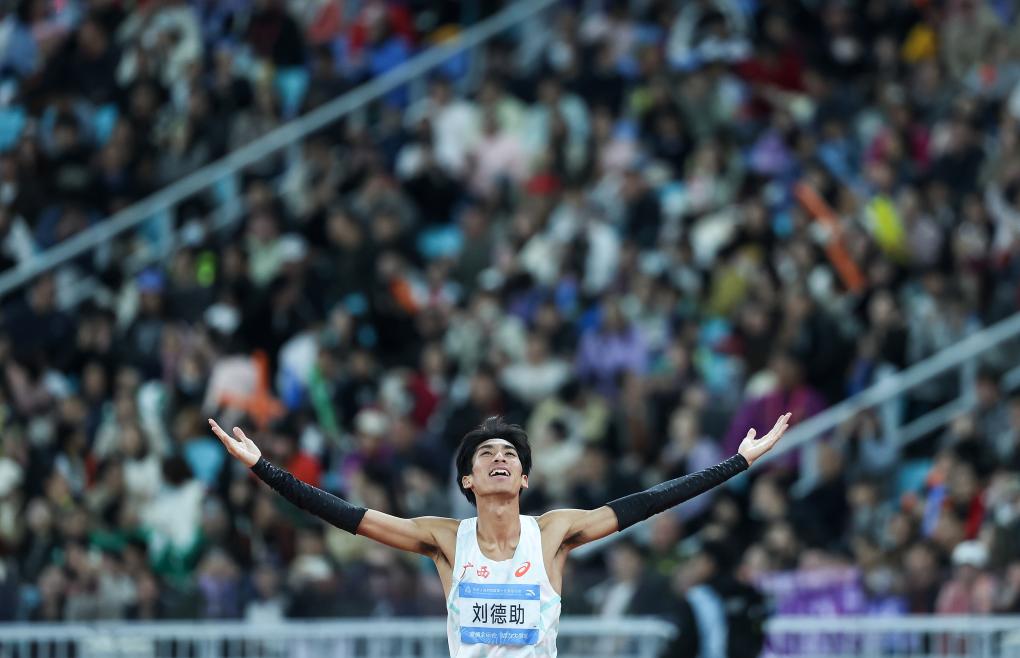 11月20日,廣西隊選手劉德助在男子1500米決賽後慶祝奪冠。 新華社記者 黃偉 攝