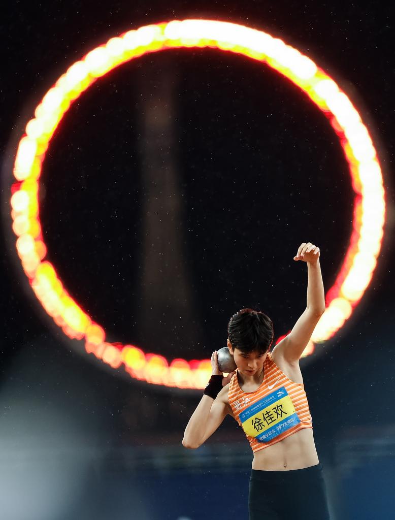 11月18日,浙江隊選手徐佳歡在女子七項全能鉛球比賽中。新華社記者 黃偉 攝