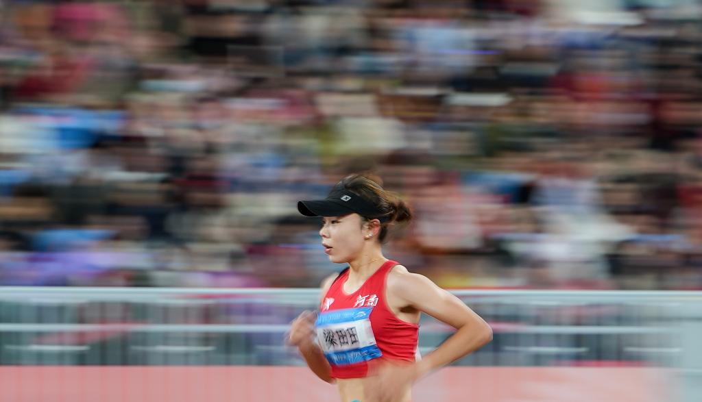 11月20日,河南隊選手梁田田在女子10000米決賽中。她奪得冠軍。 新華社記者 李一博 攝