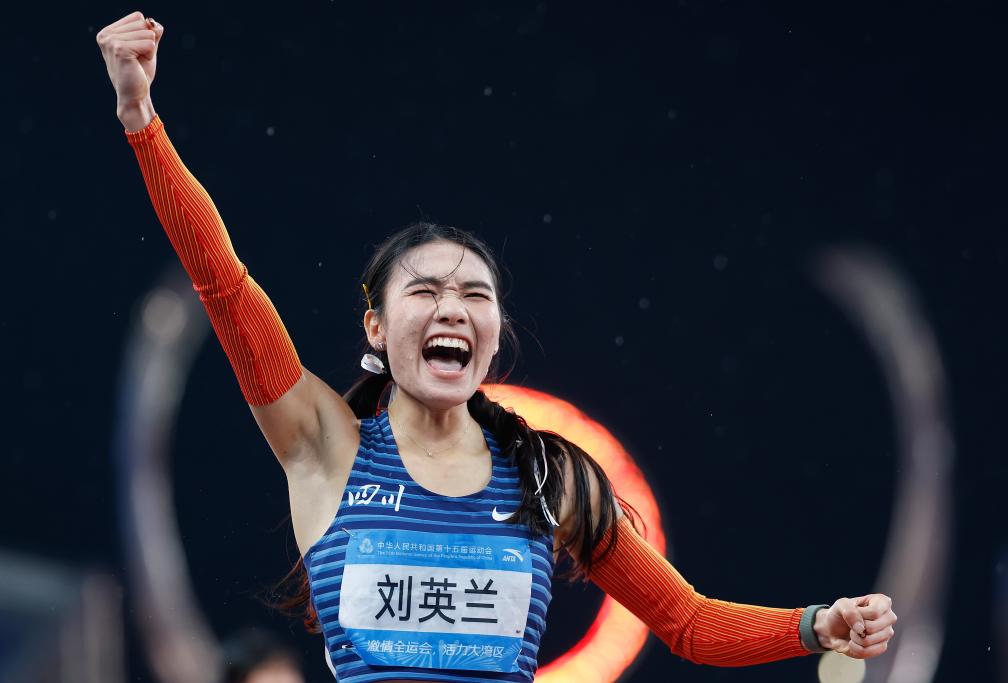 11月18日,四川隊選手劉英蘭在女子400米決賽後慶祝奪冠。新華社記者 黃偉 攝