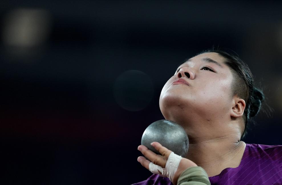 11月16日,河北隊選手鞏立姣在女子鉛球決賽前。新華社記者 李一博 攝