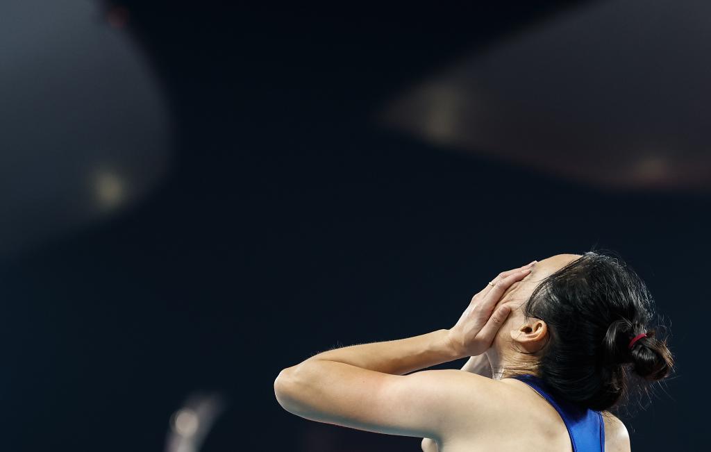 11月17日,廣西隊選手韋永麗在女子100米決賽後落淚。她獲得亞軍。 新華社記者 黃偉 攝