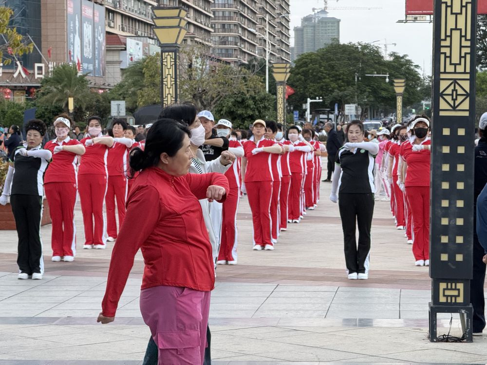 11月21日,市民在海南省東方市集體鍛煉。新華社記者 陳子薇 攝