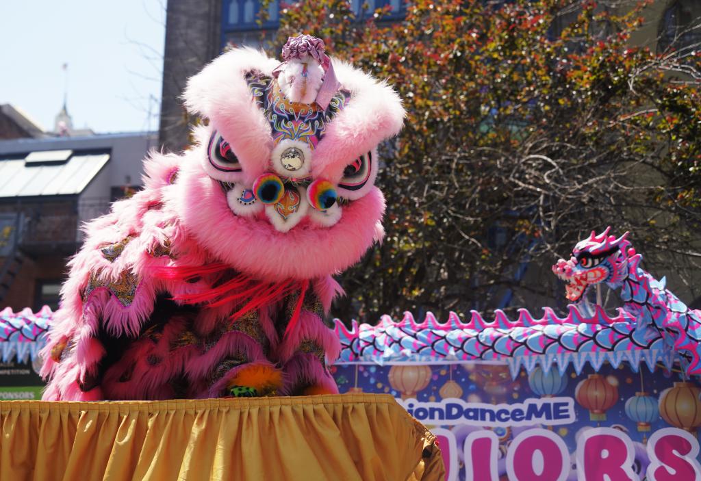 ↑5月17日,在美國舊金山唐人街,一個少年舞獅團在第四屆舊金山舞獅舞龍公開賽頒獎典禮上進行舞獅表演。新華社記者 吳曉凌 攝