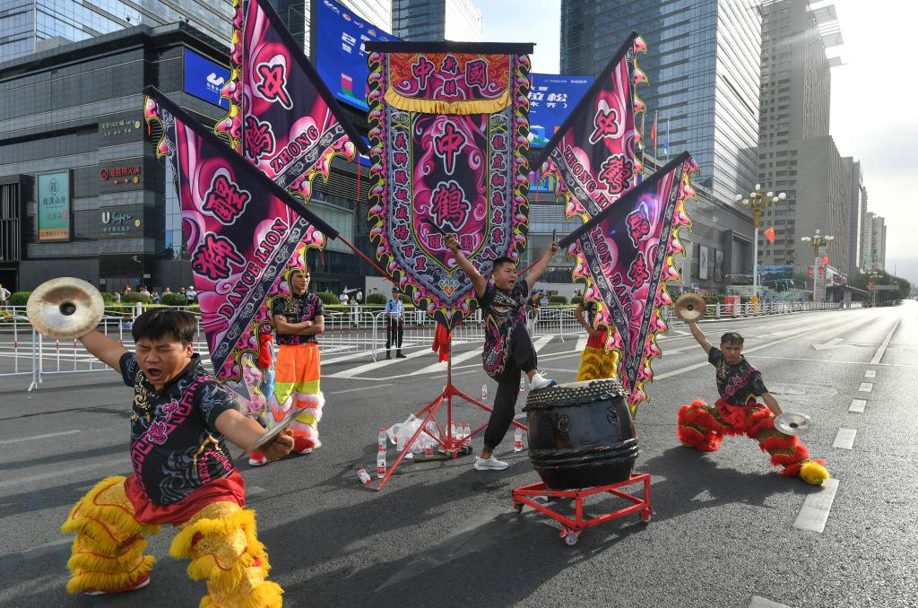 ↑11月11日,粵港澳聯隊在第十五屆全國運動會群眾展演舞龍舞獅南獅自選項目決賽中獲得一等獎。 新華社記者 王鵬 攝